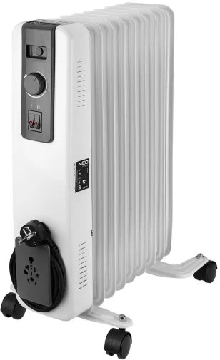 Масляний радіатор Neo Tools 90-152 — це ефективний та безпечний пристрій для обігріву невеликих приміщень, який поєднує потужність і функціональність у компактному дизайні. Оснащений 9 ребрами розміром 120 x 500 мм і максимальною потужністю 2000 Вт, радіатор пропонує три рівні нагріву — 800, 1200 і 2000 Вт, що дозволяє регулювати температуру під ваші потреби.