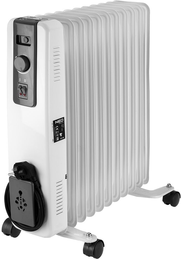 Масляний нагрівач 2500 Вт 11 ребер 90-153 від NEO TOOLS - це пристрій, що пропонує 3 ступені нагріву: 1000, 1500 і 2500 Вт. Оснащений 11 ребрами розміром 120 x 500 мм. Нагрівач має вимикач зі світловим індикатором і регульований терморегулятор.