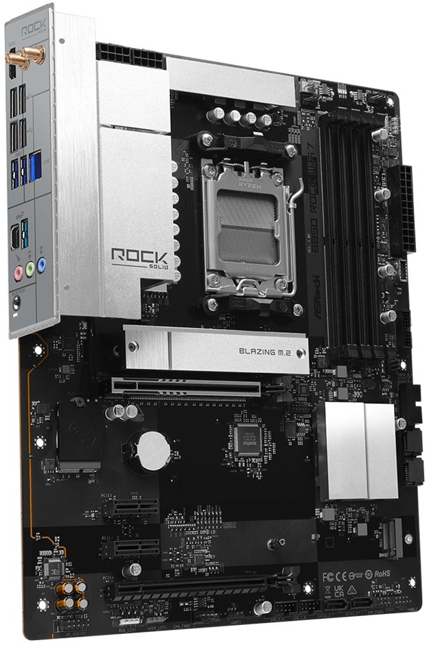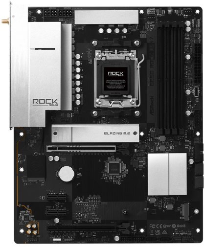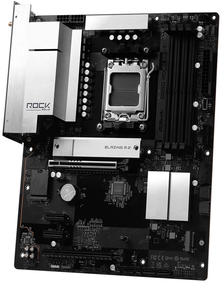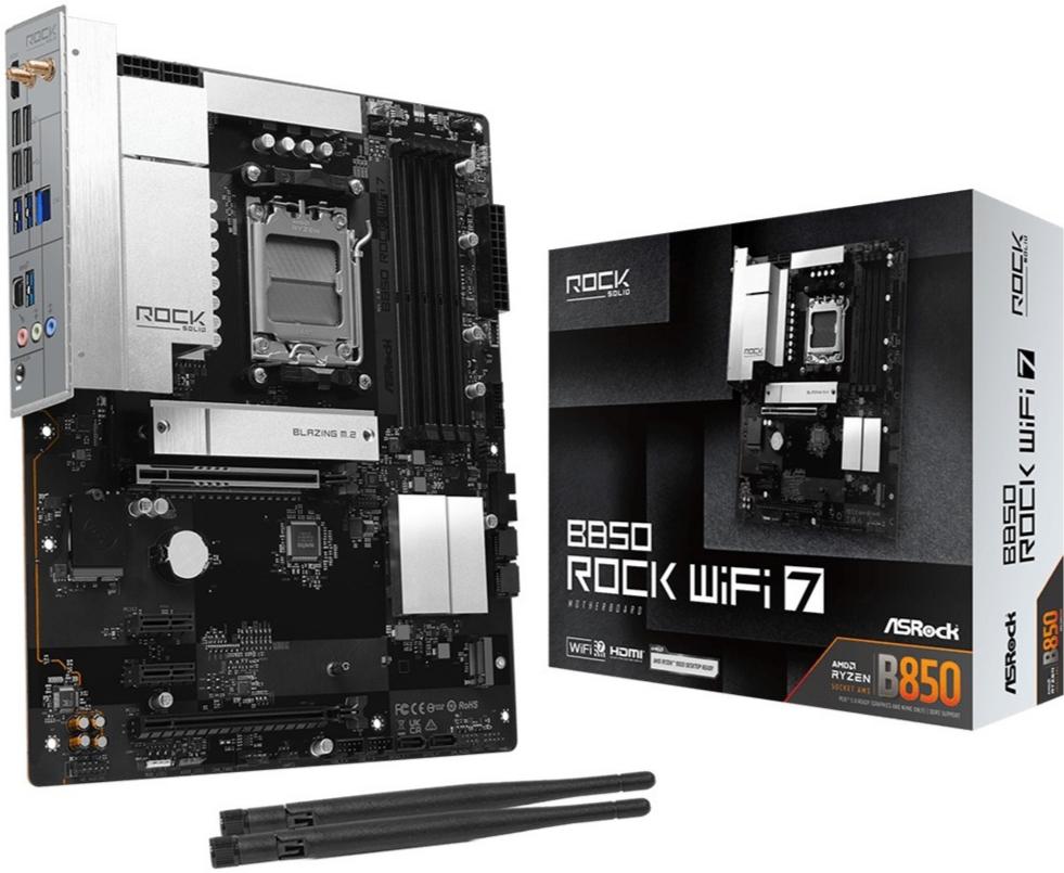 ASRock B850 Rock WiFi 7 — це повнорозмірна материнська плата форм-фактору ATX на чипсеті AMD B850 для процесорів AMD Ryzen серій 9000, 8000 та 7000 у сокеті AM5. Серія Rock поєднує надійну якість і збалансований набір можливостей для роботи, навчання та ігор.