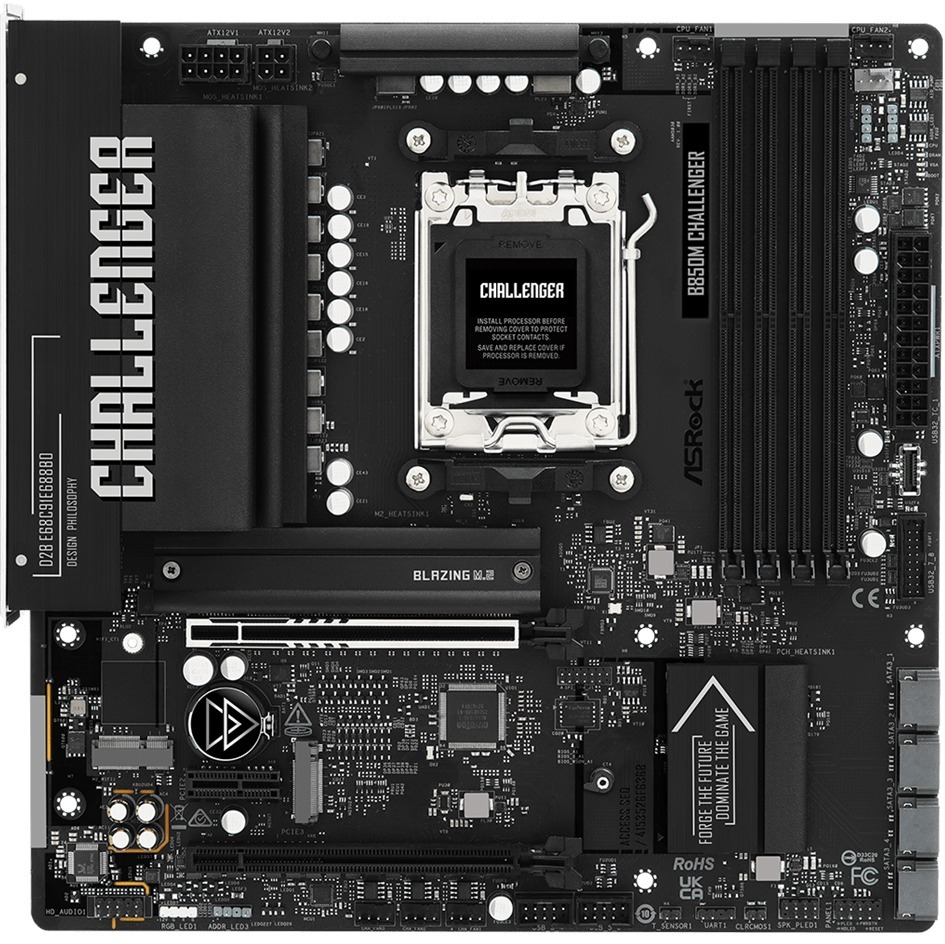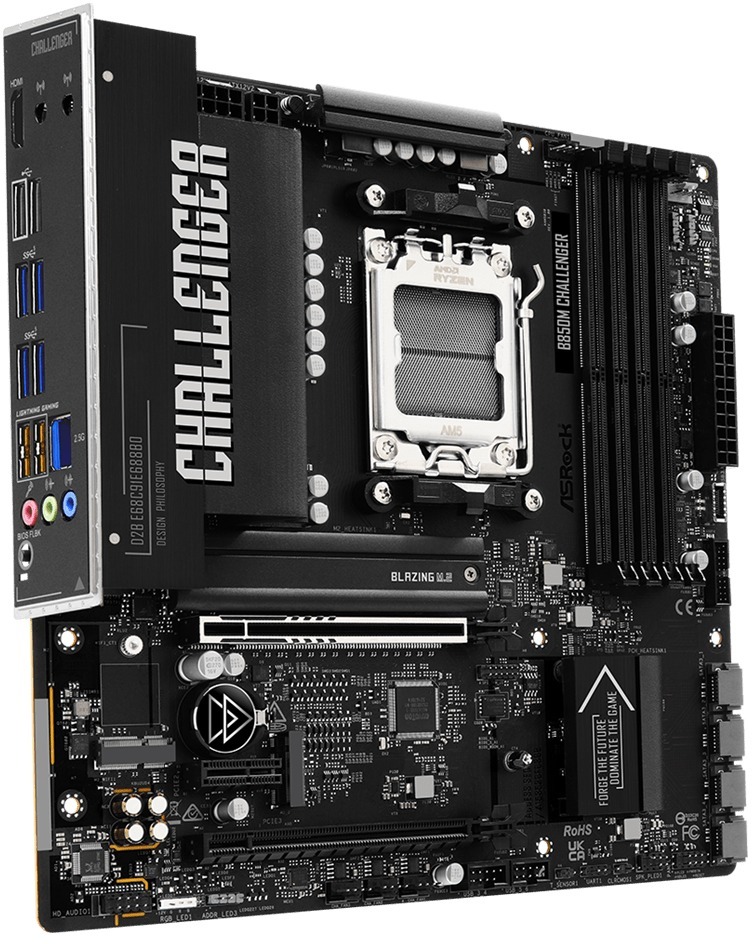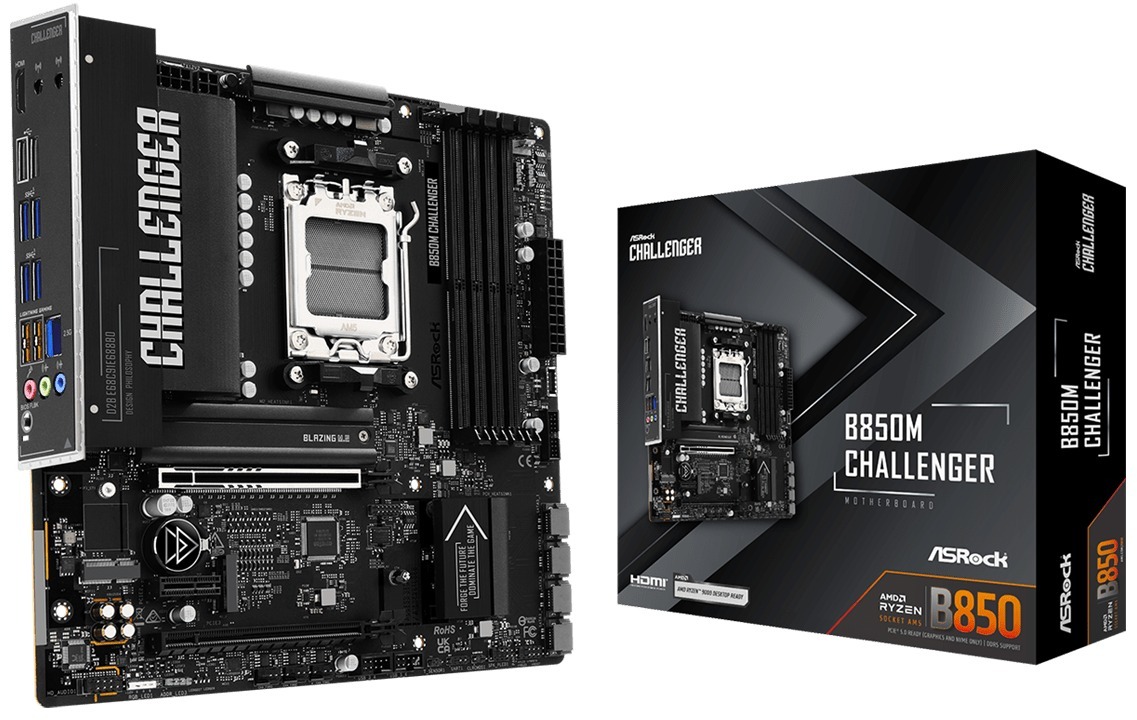 ASRock B850M Challenger — це компактна материнська плата форм-фактору Micro ATX на чипсеті AMD B850 для процесорів AMD Ryzen серій 9000, 8000 та 7000 у сокеті AM5. Серія Challenger орієнтована на геймерів, пропонуючи ігрові функції та твердий набір характеристик за доступну ціну.