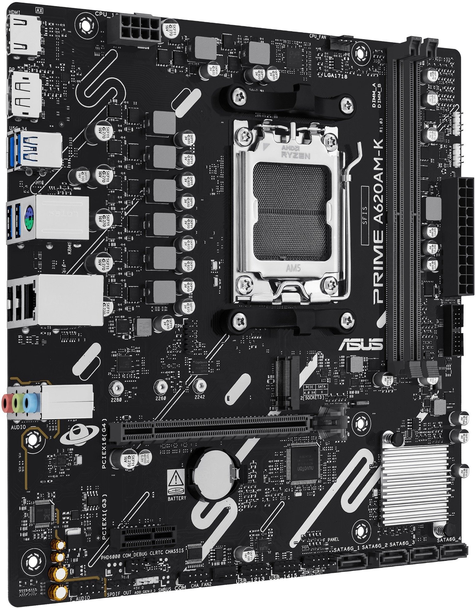 ASUS PRIME A620AM-K — це материнська плата формату micro-ATX на базі чіпсета AMD A620 для сокета AM5, розроблена для сучасних ПК з підтримкою AI. Вона сумісна з процесорами AMD Ryzen і ідеально підходить для геймінгу та створення контенту. Ця модель поєднує стабільну продуктивність, ефективне охолодження та зручні інструменти для користувачів будь-якого рівня.