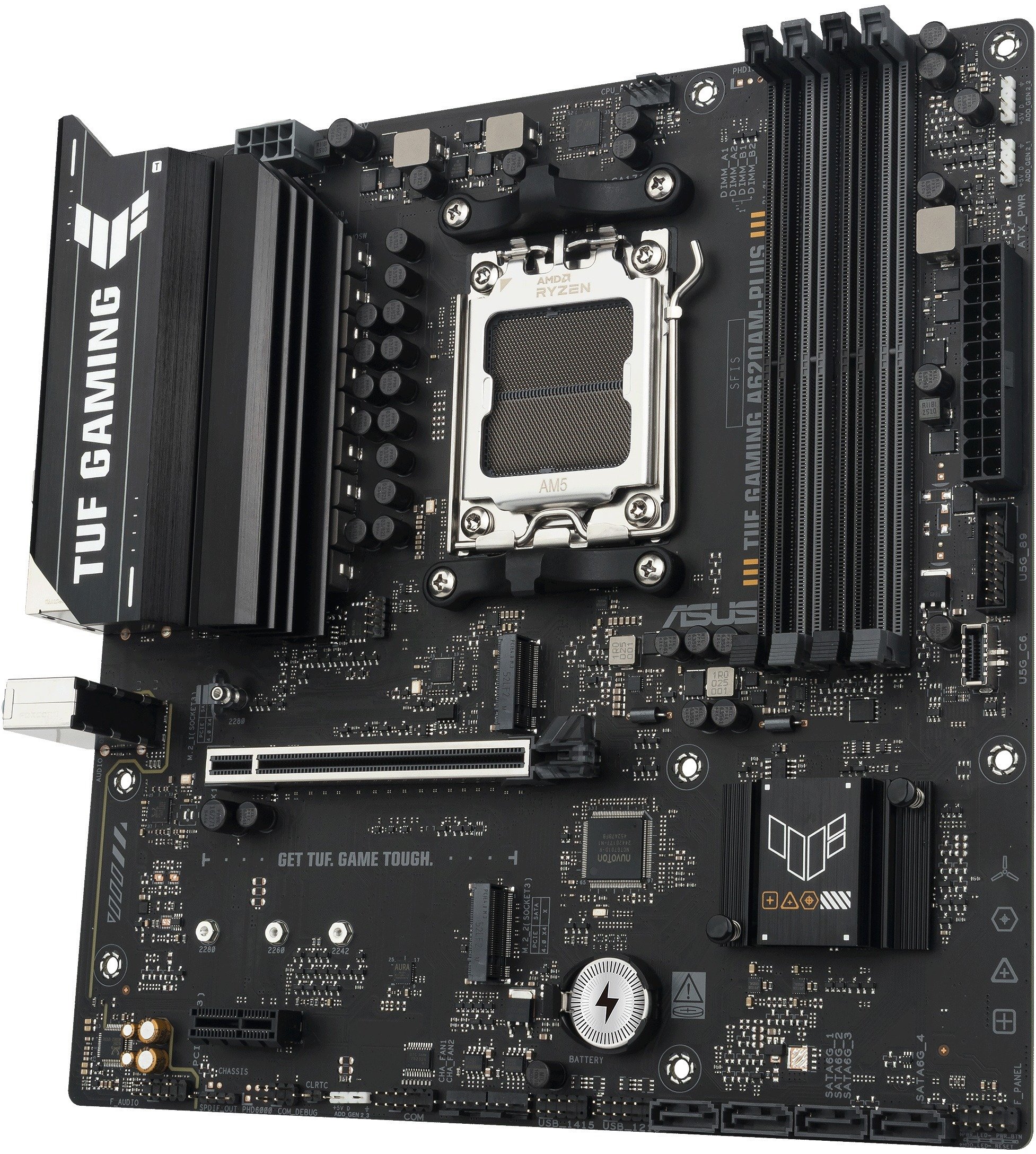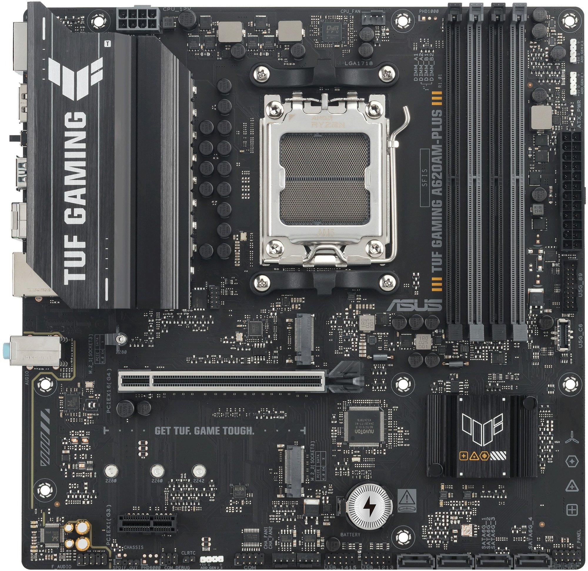 ASUS TUF GAMING A620AM-PLUS — це міцна материнська плата формату micro-ATX на чіпсеті AMD A620 для сокета AM5, сумісна з процесорами AMD Ryzen, включаючи серію 9000. Вона поєднує надійність військового класу з геймерськими можливостями, забезпечуючи стабільну роботу для ігор, AI-застосунків та творчих завдань. Завдяки посиленій системі живлення та всебічного охолодження ця плата витримує інтенсивні навантаження без компромісів.