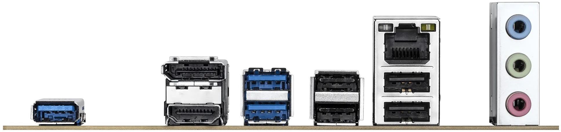Мережа Gigabit LAN гарантує стабільне з'єднання на швидкості до 1 Гбіт/с, ідеальне для онлайн-ігор чи стрімінгу. Звукова система 8-канального HD Audio з екрануванням шуму та якісними конденсаторами забезпечує чистий звук без перешкод. На задній панелі — HDMI, DisplayPort для моніторів, порти USB 3.2 Gen 1 для периферії та вісім USB загалом.