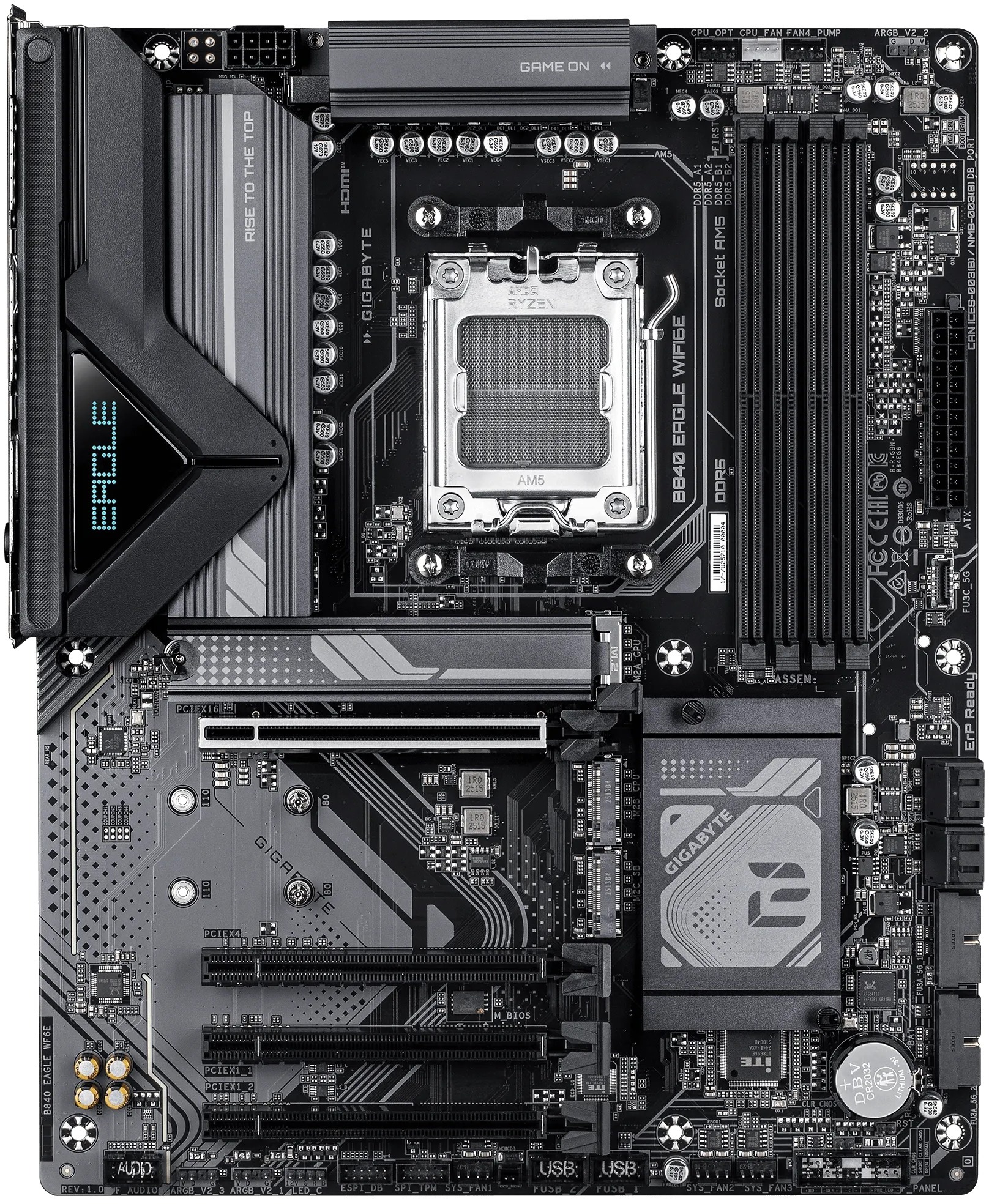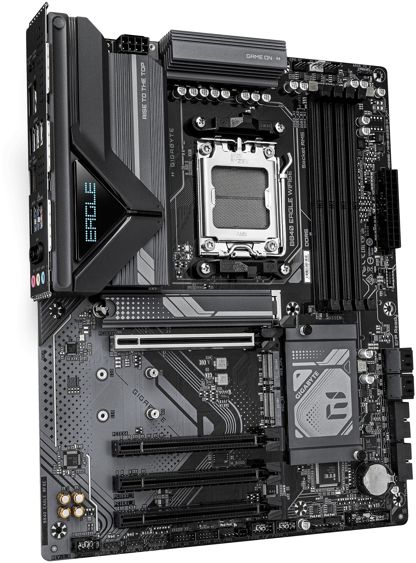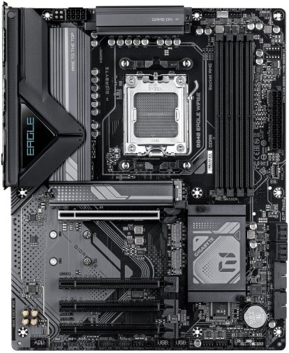 Gigabyte B840 EAGLE WIFI6E — повнорозмірна материнська плата форм-фактора ATX на платформі AMD Socket AM5, розроблена для ігрових систем із акцентом на продуктивність, розширені можливості підключення та зручність складання. Вона підтримує процесори AMD Ryzen серій 9000, 8000 і 7000 та поєднує в собі надійну схему живлення, швидку пам'ять DDR5 і бездротову мережу Wi-Fi 6E. Плата серії Eagle орієнтована як на досвідчених ентузіастів, так і на тих, хто вперше збирає власний комп'ютер.
