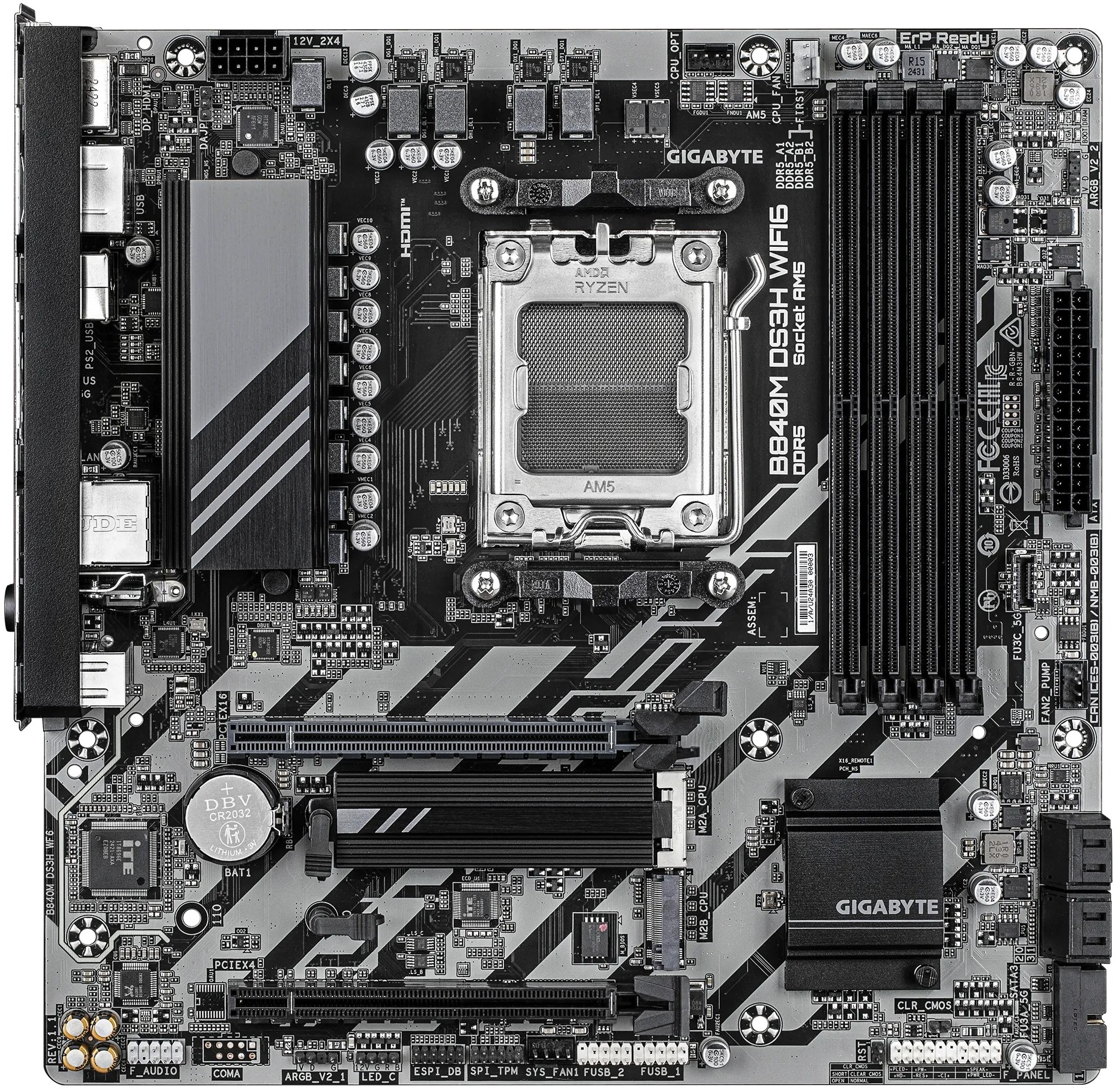Gigabyte B840M DS3H WIFI6 — материнська плата формфактора MicroATX, що підтримує швидкісну пам'ять, має широкий набір інтерфейсів, новітні стандарти зберігання даних і відмінні можливості підключення, щоб забезпечити найкращу продуктивність.