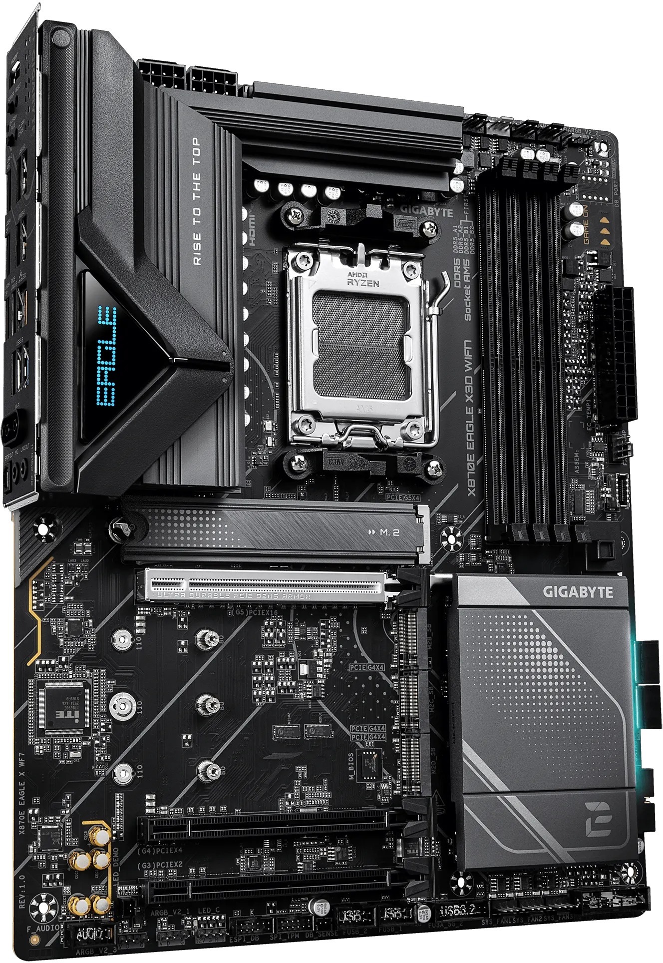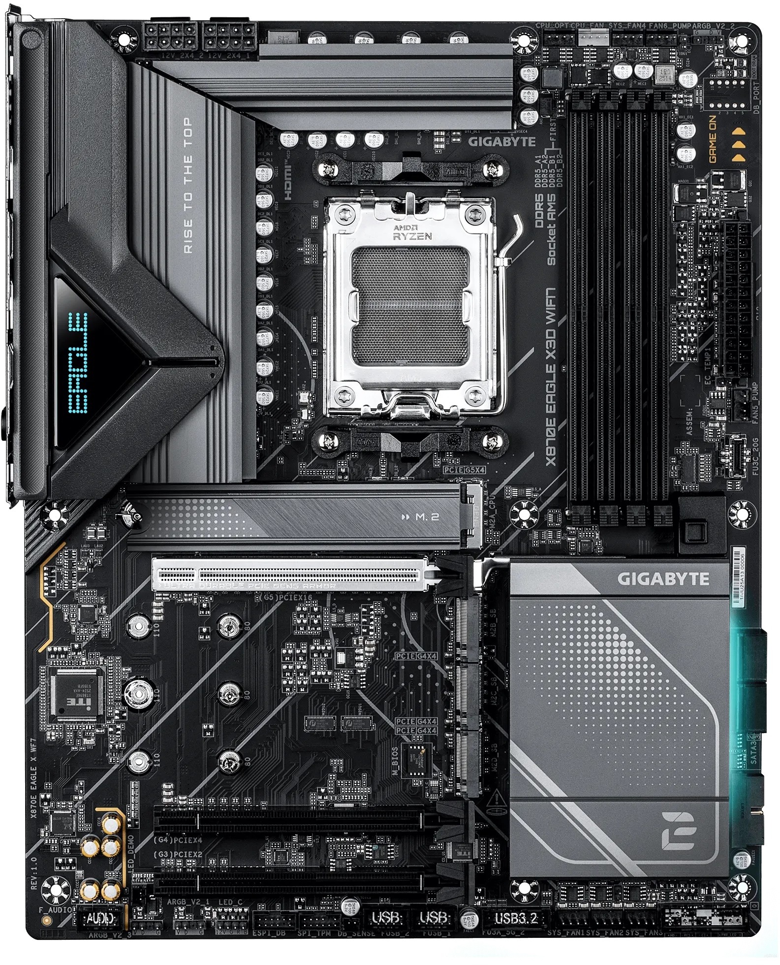 Материнська плата Gigabyte X870E EAGLE X3D WIFI7 — це сучасне рішення на чипсеті AMD X870E, створене спеціально для процесорів Ryzen 9000, 8000 та 7000 серій з сокетом AM5. Вона поєднує високу продуктивність, розширені можливості для геймерів та ентузіастів з підтримкою найновіших технологій, таких як PCIe 5.0 та Wi-Fi 7. Плата ідеально підходить для потужних ігрових збірок, робочих станцій чи систем з кількома відеокартами, забезпечуючи стабільність і швидкість навіть під максимальним навантаженням.