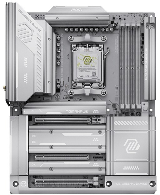 MSI MAG X870E TOMAHAWK MAX WIFI PZ — це ігрова материнська плата формату ATX на базі чипсета AMD X870E, призначена для геймерів та ентузіастів, які шукають стабільну, міцну та зручну в збірці основу для ПК. Вона підтримує процесори AMD Ryzen 9000, 8000 та 7000 серій на сокеті AM5, пропонує передові технології підключення, включаючи Wi-Fi 7, 5G LAN, USB 40 Gbps та PCIe 5.0, а також численні EZ DIY функції для спрощення монтажу.