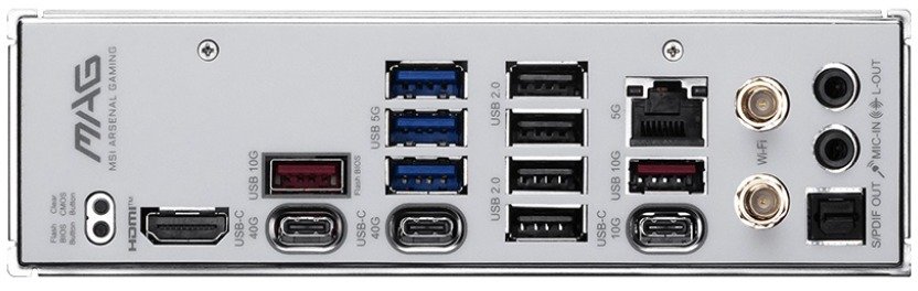 Для зберігання доступні чотири слоти M.2 (два PCIe 5.0 x4 та два PCIe 4.0 x4) з подвійними радіаторами Shield Frozr, а також чотири SATA 6G з підтримкою RAID. Розширення включає основний слот PCIe 5.0 x16 з SMT-процесом та додатковим живленням, забезпечуючи повну пропускну здатність для сучасних відеокарт.