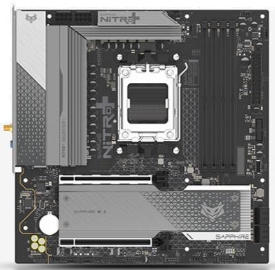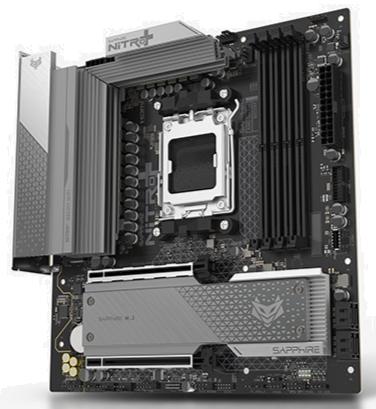 Материнська плата Sapphire Nitro+ B850M WIFI — це компактне Micro-ATX рішення на чипсеті AMD B850 з сокетом AM5, створене для сучасних процесорів AMD Ryzen 9000, 8000 та 7000 серій. Вона поєднує потужну систему живлення, ефективне охолодження та сучасні можливості підключення, включаючи WiFi 6, що робить її відмінним вибором для геймерів, ентузіастів та користувачів, які збирають продуктивну систему в обмеженому просторі корпусу.