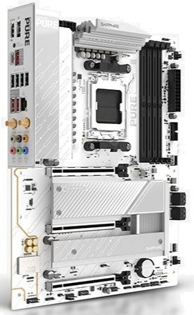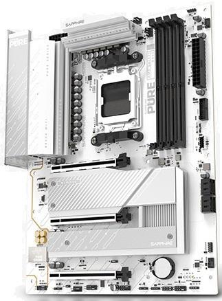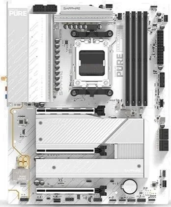 Материнська плата Sapphire Pure B850A WIFI 7 — це повнорозмірне ATX-рішення на чипсеті AMD B850 з сокетом AM5, призначене для процесорів AMD Ryzen 9000, 8000 та 7000 серій. Вона вирізняється потужною системою живлення, підтримкою найсучасніших технологій, таких як WiFi 7 та PCIe 5.0, а також стильним дизайном у серії Pure, що робить її ідеальним вибором для ентузіастів, геймерів та тих, хто збирає високопродуктивну систему з акцентом на швидке бездротове підключення та майбутню сумісність.