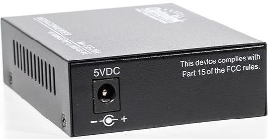 Корпус виконаний у металевому виконанні, що забезпечує механічну міцність і захист від зовнішніх впливів. Медіаконвертер підтримує автоматичне узгодження швидкості та дуплексу (Auto MDI/MDI-X), тому не потребує ручного налаштування. Живлення здійснюється від зовнішнього блока 5 В, а світлодіодні індикатори чітко показують стан підключення, живлення та передачі даних.