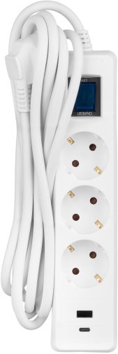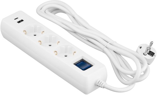 Пристрій оснащений трьома розетками стандарту F, які підходять для більшості сучасних електроприладів. Додатковою перевагою є наявність USB-портів — як класичного USB-A, так і універсального USB-C, які забезпечують швидке й безпечне заряджання смартфонів, планшетів та інших ґаджетів без потреби у додаткових адаптерах.