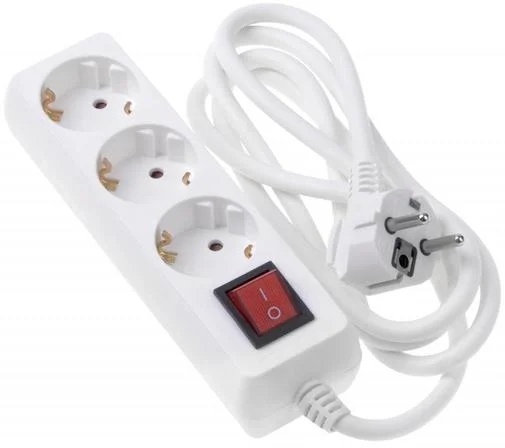 Мережевий фільтр виробництва 2E. Оснащений трьома розетками та вимикачем. Довжина кабеля складає 1.8 м. Допоможе підключити до мережі змінного струму побутову та цифрову техніку.