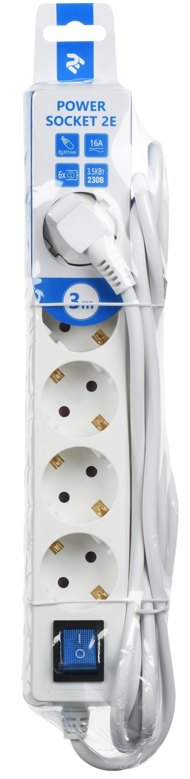 2E U06ESM3W - мережевий фільтр із вимикачем, заземленням та захисними шторками для дітей. Розеток всього 6-ть, вони дозволять підключати побутові пристрої чи цифрову техніку до мережі.
