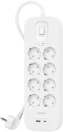 Мережевий фільтр Belkin Connect забезпечує надійний захист вашої електроніки та побутової техніки від стрибків напруги, допомагаючи продовжити термін їх служби. Вбудований індикатор захисту чітко сигналізує, чи перебувають підключені пристрої під належним захистом, а також повідомляє, коли настав час замінити фільтр.