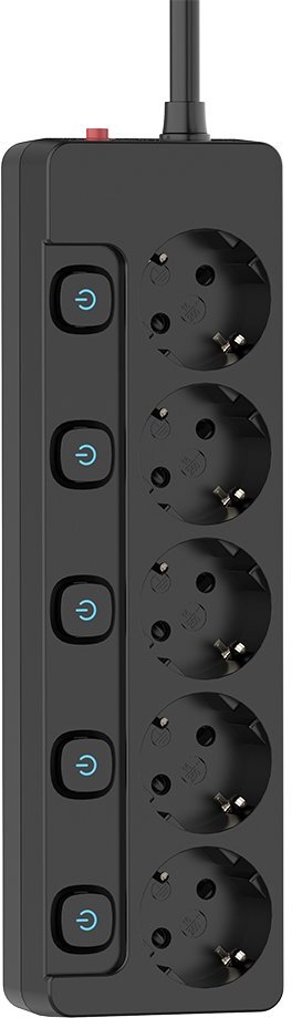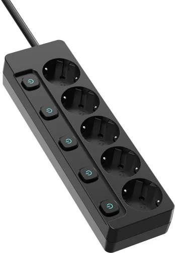 Фільтр оснащений п’ятьма розетками європейського типу з заземленням, що гарантує стабільне живлення та захист від випадкового дотику до струмопровідних частин. Довжина кабелю 2 метри дає свободу розміщення — ви можете поставити фільтр подалі від розетки, не обмежуючи себе коротким шнуром. Міцна конструкція з вогнестійкого пластику витримує щоденне використання, не нагрівається та не деформується.