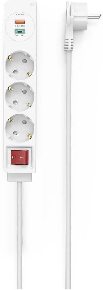 Надійний подовжувач виробництва Hama. Призначений для зручного підключення електричних пристроїв. Оснащений трьома розетками та кабелем довжиною 1.5 м, а також двома вбудованими USB-роз'ємами для зарядки: одним портом USB-A та одним USB-C. Передбачений загальний вимикач, щоб одним дотиком вимкнути всі підключені пристрої. Подовжувач стане чудовим варіантом для офісного та домашнього використання.