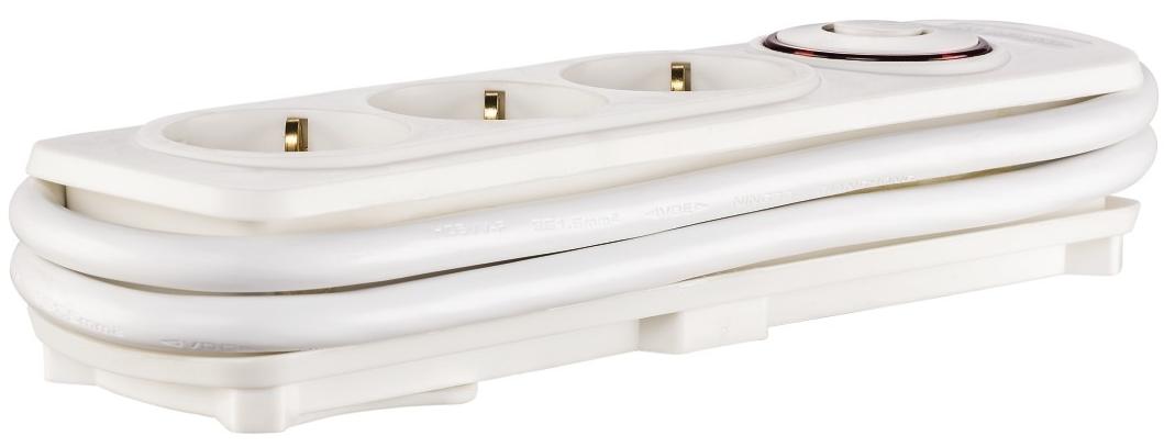 Подовжувач мережевий НАМА з круглим вимикачем для підключення до 3 електроприладів. Має ряд особливостей: