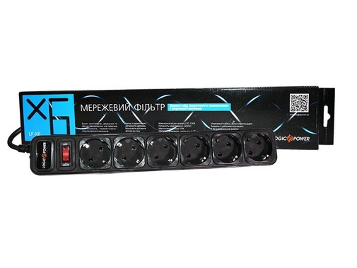 LogicPower LP-X6 - надійний мережевий фільтр, який дозволить зручно підключати ваші пристрої на відстані до 10 метрів. Виготовлений із якісних матеріалів, що забезпечить тривалий термін використання. Мережевий фільтр наділений шістьма євро-розетками із заземленням. Серед основних переваг LogicPower LP-X6 можна відзначити ослаблення імпульсних перешкод, а також захист від короткого замикання.