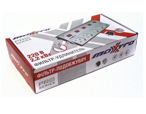 Maxxtro PRO PWS 05K-10F - якісний та сучасний мережевий фільтр з довжиною кабеля 3 метри. Виготовлений з високоякісних матеріалів та виконаний у чорному кольорі. Також фільтр наділено світлодіодним індикатором включеного стану та індивідуальними вимикачами для кожної з розеток.
