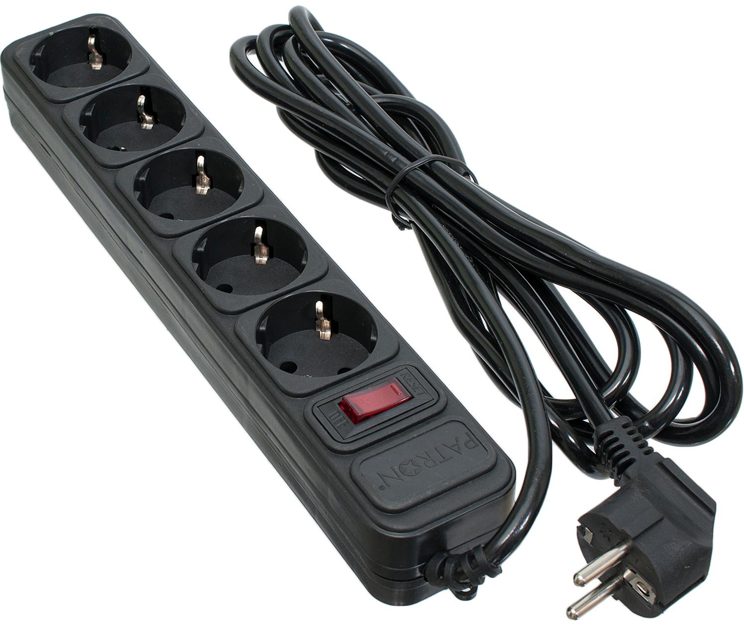 Мережевий фільтр на 5 розеток виробництва Patron. Оснащений вимикачем, довжина кабелю складає 3 м. За допомогою даного подовжувача, користувачу буде легко підключати побутову та цифрову техніку у приміщенні. Виріб отримав наступні особливості: