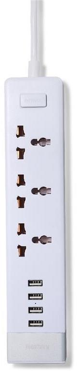 Remax RU-S2 - мережевий фільтр із заземленням. Оснащений 4-ма USB портами, які призначені для зарядки мобільних пристроїв. Розеток всього три (тип F/євро), вони дозволять підключати побутові пристрої чи цифрову техніку до мережі.