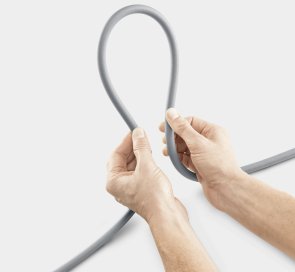 10-метровий високоякісний шланг PremiumFlex відрізняється особливою гнучкістю, не перегинається і легко намотується. Вбудований барабан для шланга забезпечує швидке розмотування та змотування, захищає шланг від пошкоджень і робить зберігання компактним. Низький центр ваги додає стійкості навіть на нерівних поверхнях.
