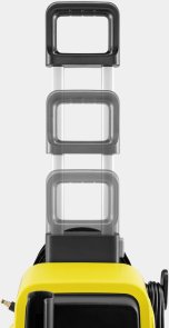 Система Quick Connect дає змогу миттєво підключати та від’єднувати шланг високого тиску. Телескопічна ручка з фіксатором, м’які колеса та ручка для перенесення роблять переміщення мийки легким і комфортним. Усі кабелі та аксесуари компактно розміщуються безпосередньо на корпусі пристрою.