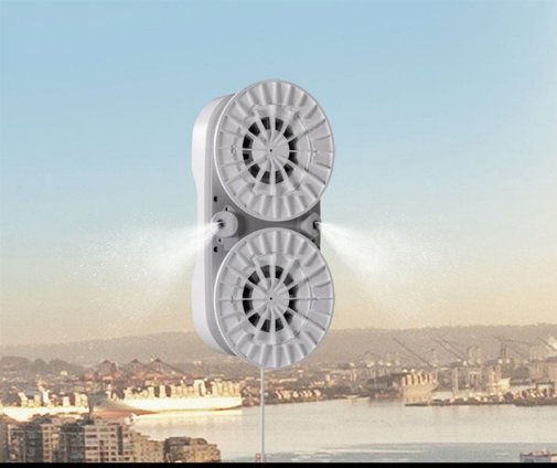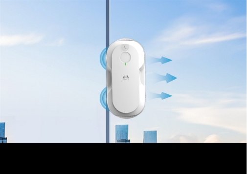 Рух робота відбувається зигзагоподібно, імітуючи ручне миття, а після завершення прибирання він повертається до точки старту. Наявний режим повторного проходу дозволяє видаляти розводи для бездоганного результату. Два ротаційні диски, що обертаються зі швидкістю 150 об/хв, забезпечують щільний контакт із поверхнею та дозволяють очищати кути та краї скла. На диски кріпляться серветки з мікрофібри, які добре вбирають вологу, ефективно видаляють забруднення, багаторазові та придатні до прання.