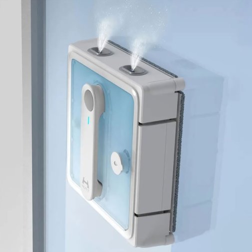 Робот рухається зигзагоподібною траєкторією, повністю охоплюючи площу вікна та забезпечуючи ретельне очищення всієї поверхні. Чотири форсунки — дві спереду та дві ззаду — рівномірно розпилюють рідину, пришвидшуючи процес миття та підвищуючи ефективність видалення забруднень.