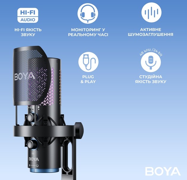 BOYA K5-02 RGB — це не просто мікрофон, а повноцінна звукозаписна станція, яка дарує свободу, контроль та професійну якість звуку у будь-якій ситуації.