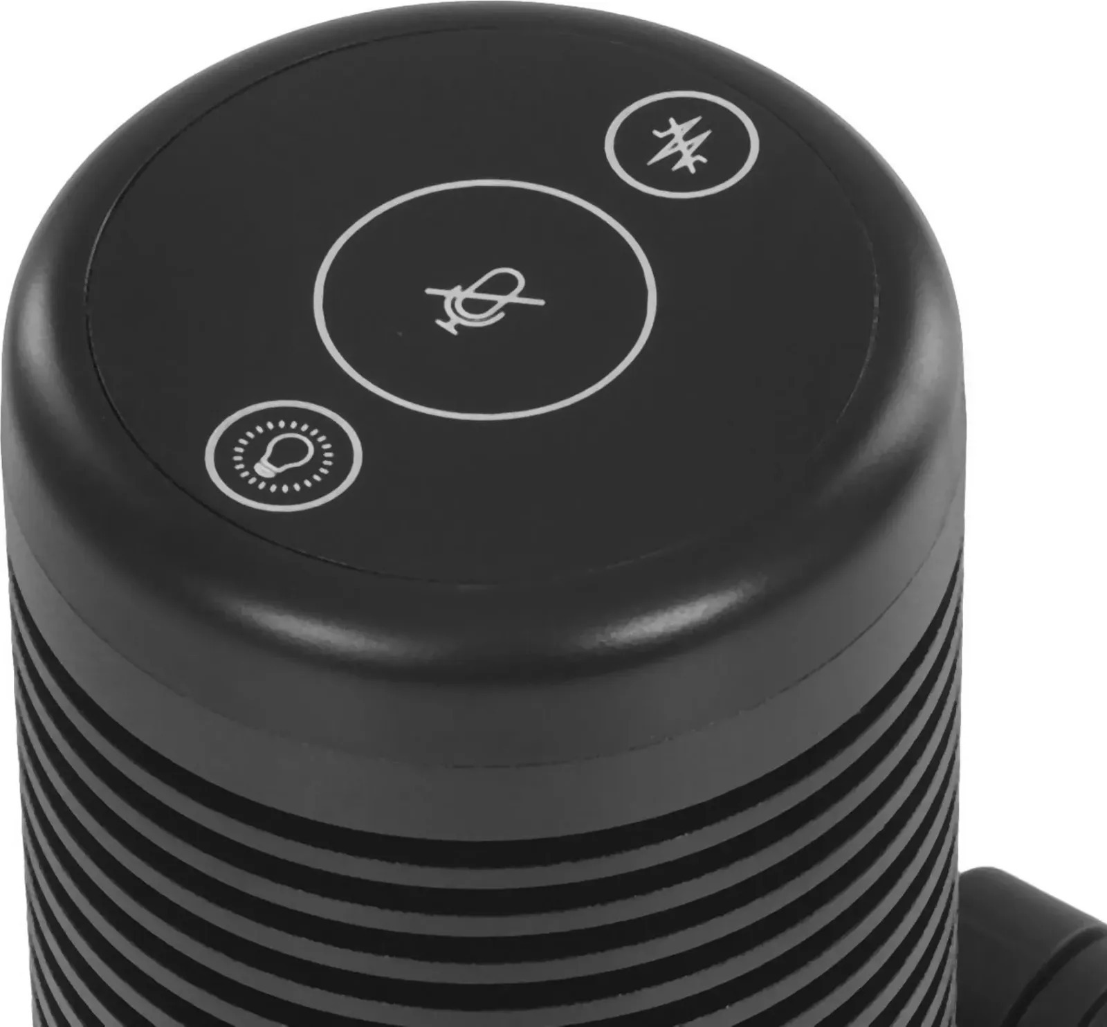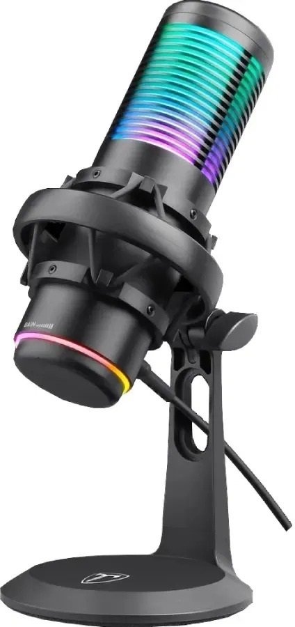 Корпус мікрофона виготовлений з високоякісного пластику, що забезпечує надійність і легкість конструкції. RGB-підсвітка надає пристрою сучасного вигляду та створює привабливу атмосферу на робочому місці або ігровій станції.
