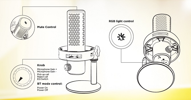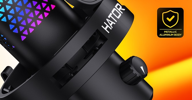 Управління мікрофоном повністю ручне та інтуїтивне: вбудовані елементи керування дозволяють миттєво регулювати рівень чутливості, вимикати звук одним дотиком (mute) та перемикати режими RGB-підсвічування прямо на корпусі. Яскраве RGB-підсвічування з передвстановленими ефектами дозволяє органічно вписати мікрофон у будь-який геймерський сетап. Для глибшого налаштування передбачений фірмовий мобільний застосунок HATOR SyncHUB, через який можна керувати параметрами роботи, підсвічуванням та режимами.