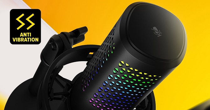 Конструкція мікрофона передбачає вбудоване антивібраційне кріплення, яке ефективно знижує механічні завади від тайпінгу на клавіатурі або випадкових дотиків до столу — типову проблему бюджетних USB-мікрофонів для стрімінгу. Міцний алюмінієвий корпус забезпечує преміальний вигляд та підвищену зносостійкість у порівнянні з пластиковими аналогами.