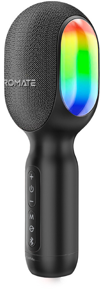 Promate VocalMic - бездротовий мікрофон для караоке з потужним динаміком, LED підсвіткою та оригінальними звуковими ефектами. Стильний дизайн, AUX порти, FM передавач, TWS та містка батарея дозволяють співати, проводити зустрічі й влаштовувати вечірки де б ти не знаходився.