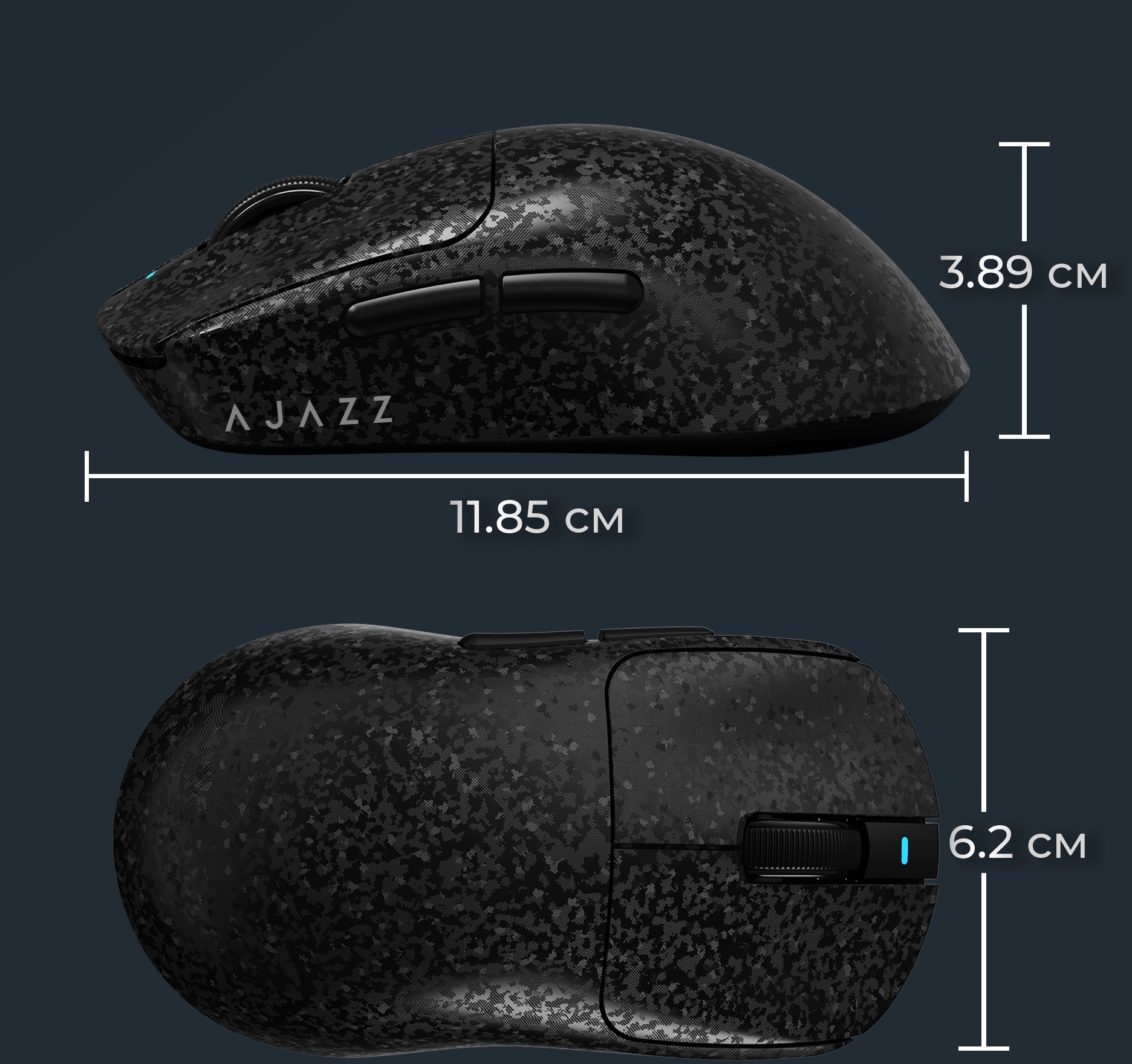 Верхня частина корпусу AJ199 виконана з карбонового волокна, що поєднує стильний преміум-дизайн і практичність. Поверхня стійка до подряпин та слідів пальців.