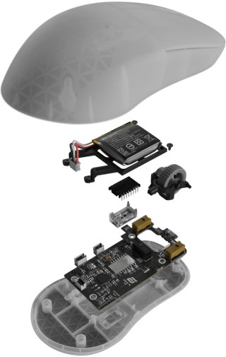 Форма корпусу оптимізована під claw grip та fingertip grip, а вага всього 63 г створює ідеальний баланс між легкістю та контролем під час інтенсивних сесій. Живлення забезпечує вбудований акумулятор із можливістю продовжити роботу в дротовому режимі без перерви на зарядку.