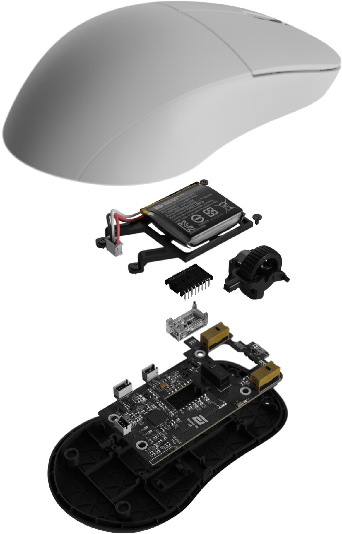 Форма корпусу оптимізована під claw grip та fingertip grip, а вага всього 63 г створює ідеальний баланс між легкістю та контролем під час інтенсивних сесій. Живлення забезпечує вбудований акумулятор із можливістю продовжити роботу в дротовому режимі без перерви на зарядку.