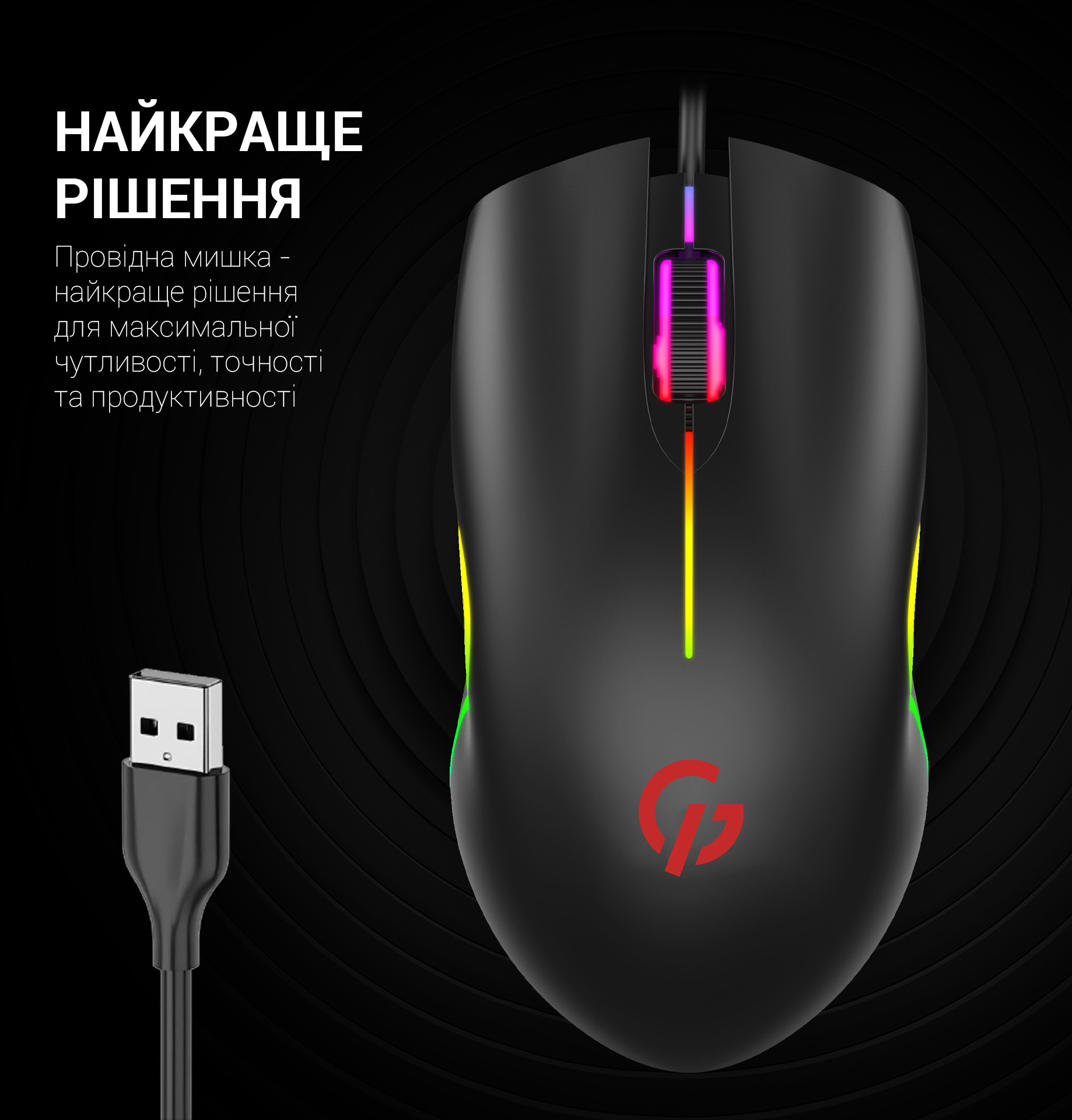 GamePro GM117 — дротова мишка для блискавичних перемог геймерів-аматорів. Вона має ергономічний дизайн з протиковзною поверхнею, що забезпечує ідеальний контакт із долонею для комфорту при тривалому використанні. Завдяки зручному положенню рука не буде швидко втомлюватися.