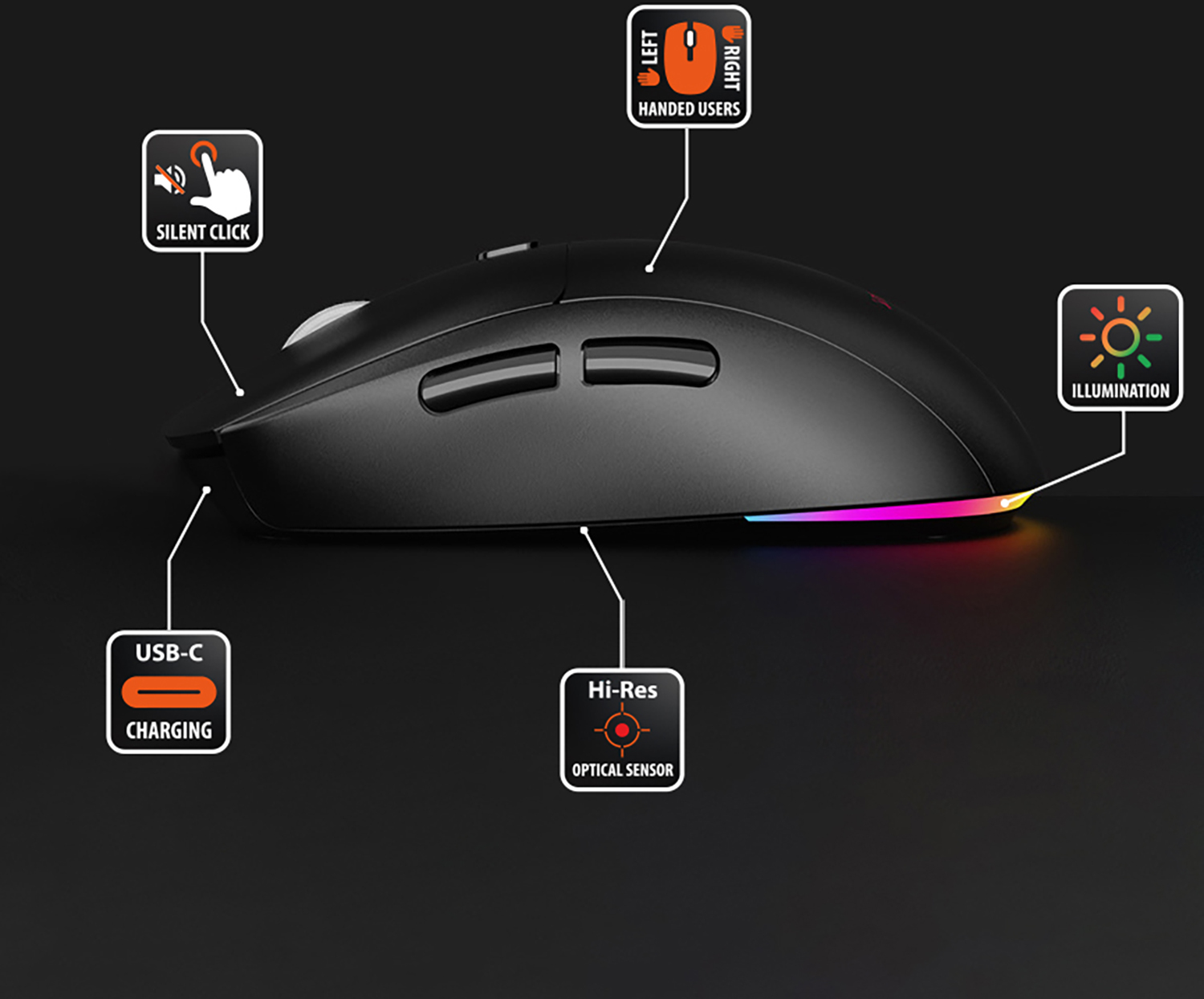 Оптичний сенсор підтримує три рівні роздільної здатності: 1200, 2400 і 3200 DPI, між якими перемикають однією кнопкою на корпусі. Мінімальний рівень ідеальний для прецизійної роботи у графічних редакторах або при роботі з великими таблицями, максимальний — для швидких реакцій у динамічних іграх або роботи на великому екрані з високою роздільною здатністю. Разом з основними кнопками та колесом прокрутки на мишці 6 кнопок, що дозволяє призначити зручні функції під кожне завдання.