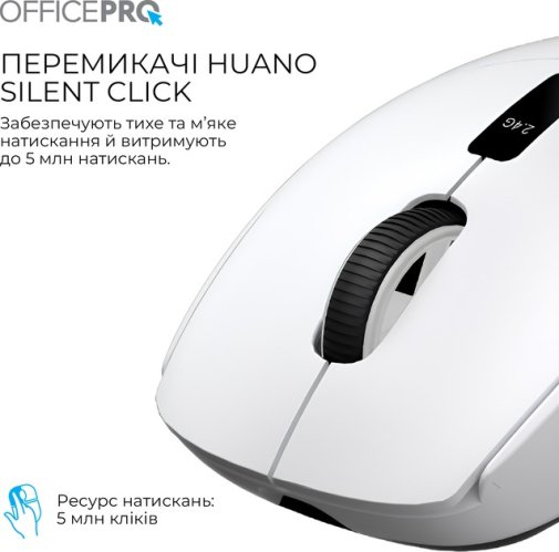 OfficePro M398 має дизайн, який ідеально адаптується до долоні, зменшуючи втому під час тривалої роботи. Ергономіка пристрою дозволяє комфортно працювати годинами без дискомфорту.