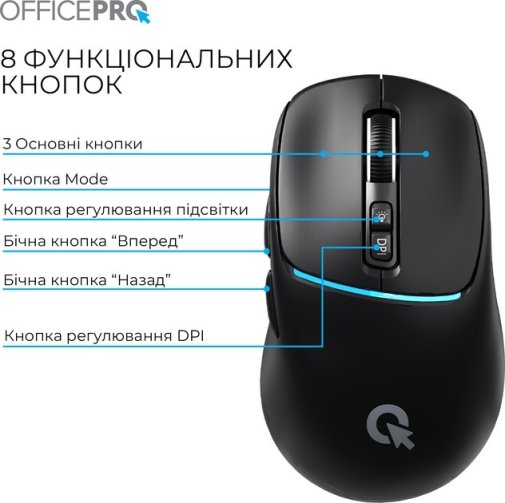 Миша має вісім програмованих кнопок, які допомагають швидко керувати завданнями та оптимізувати робочий процес. Кожне натискання забезпечує миттєвий і точний відгук, що суттєво підвищує ефективність роботи.