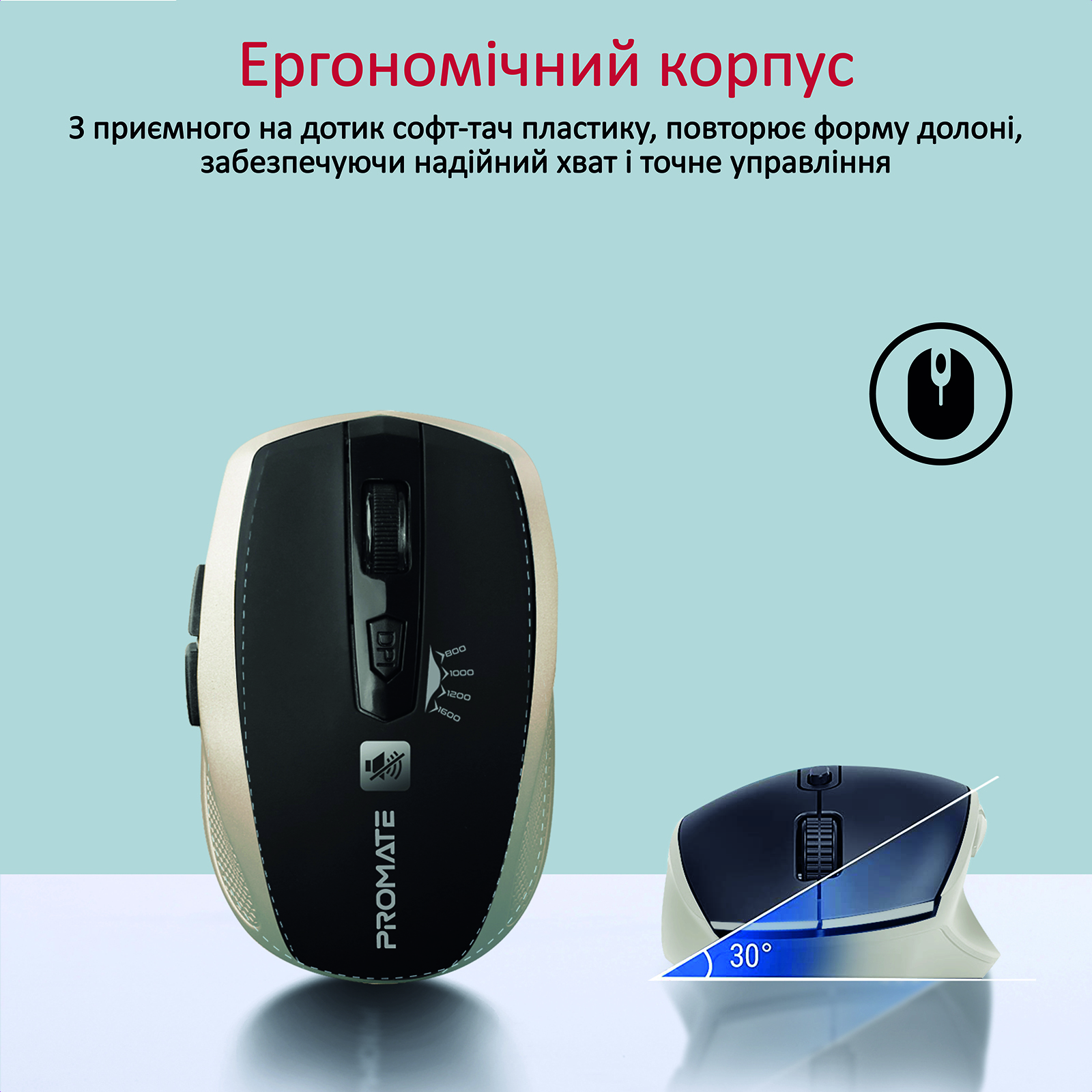 Перемикай швидкість курсора миші одним натисканням (800/1000/1200/1600 dpi).