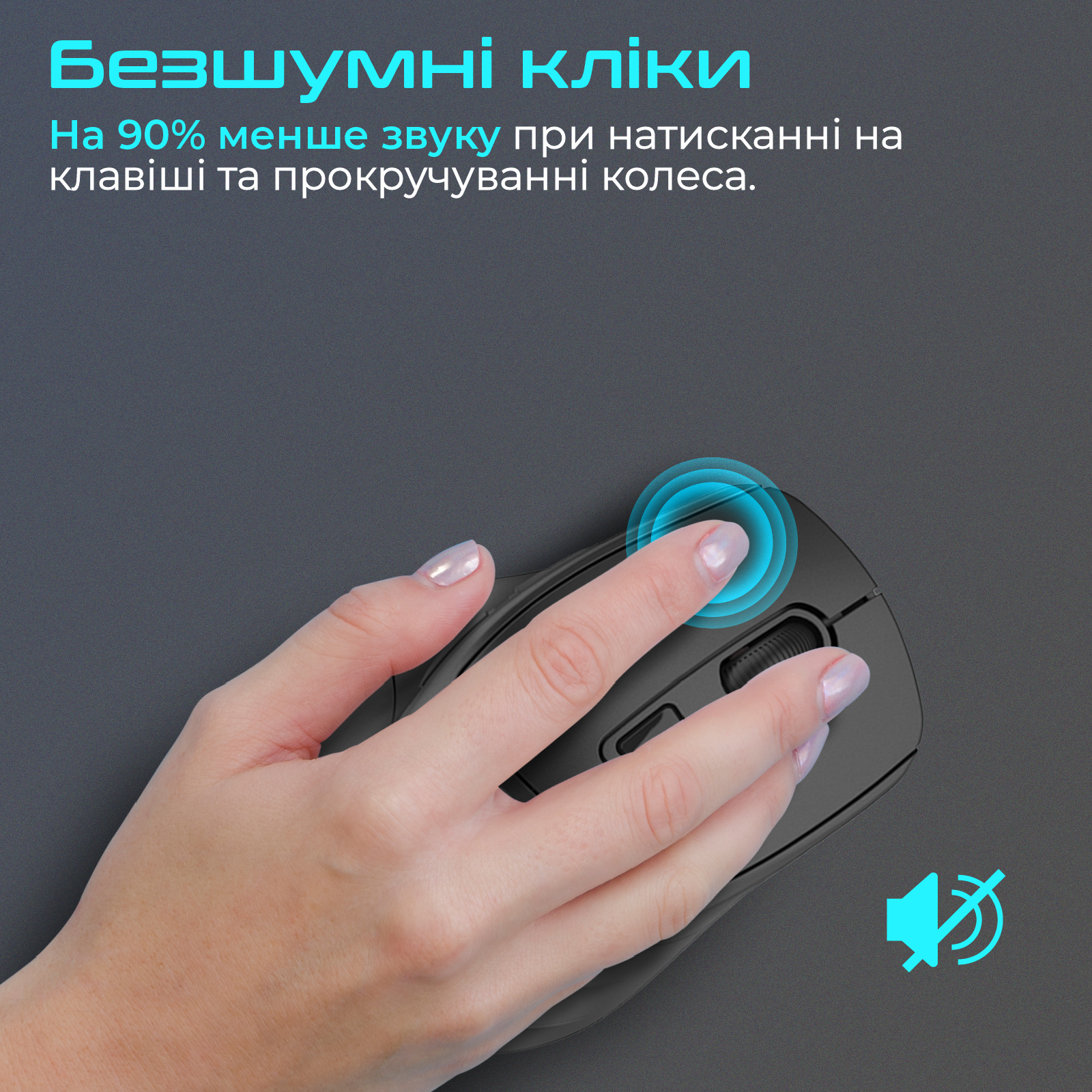 На 90% менше звуку при натисканні на клавіші та прокручуванні колеса. Працюй у тиші та з комфортом.