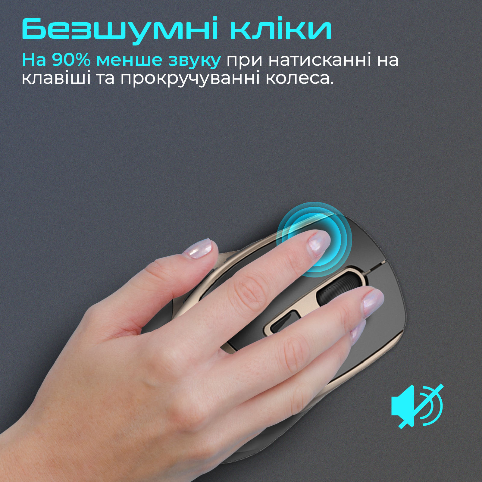 На 90% менше звуку при натисканні на клавіші та прокручуванні колеса. Працюй у тиші та з комфортом.