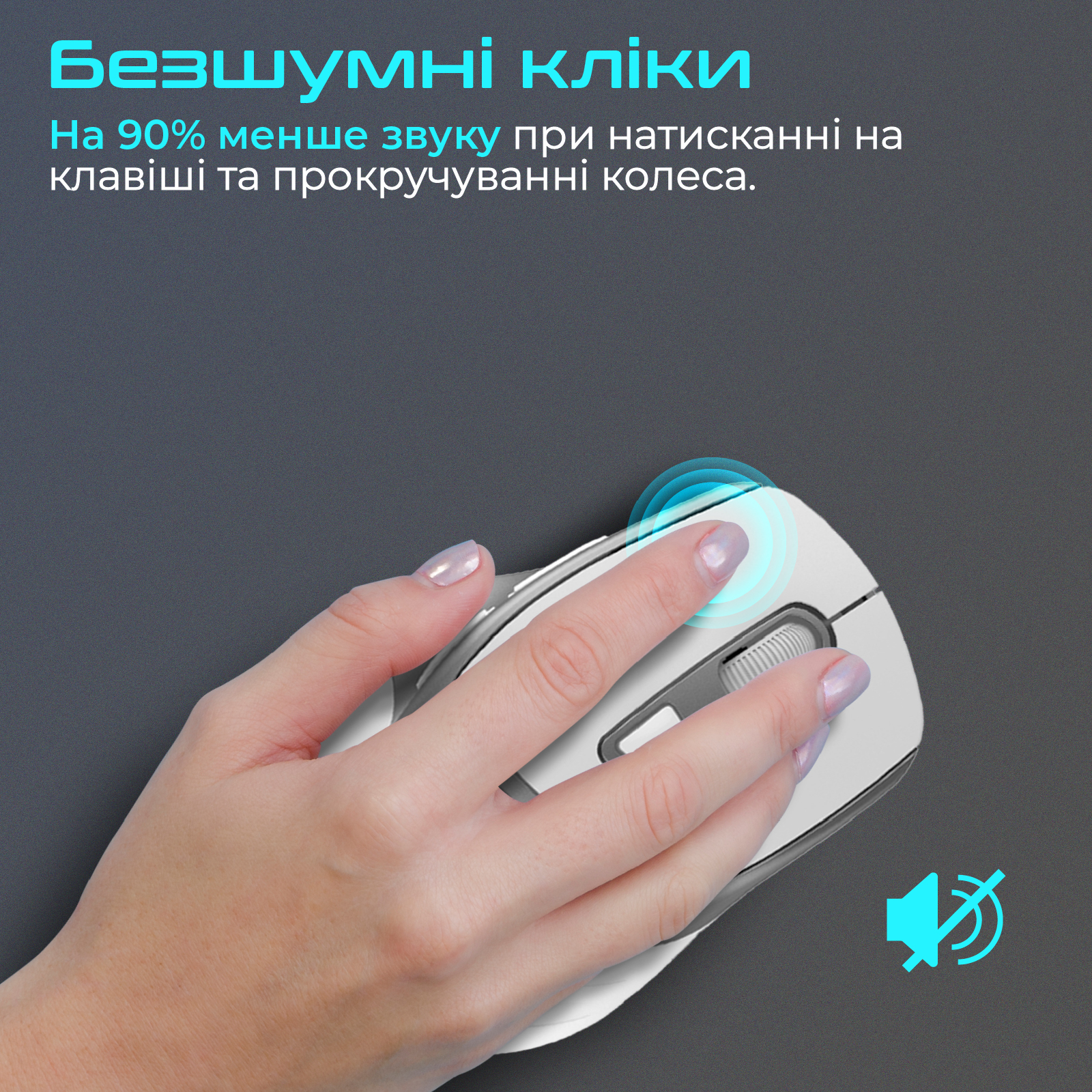 На 90% менше звуку при натисканні на клавіші та прокручуванні колеса. Працюй у тиші та з комфортом.