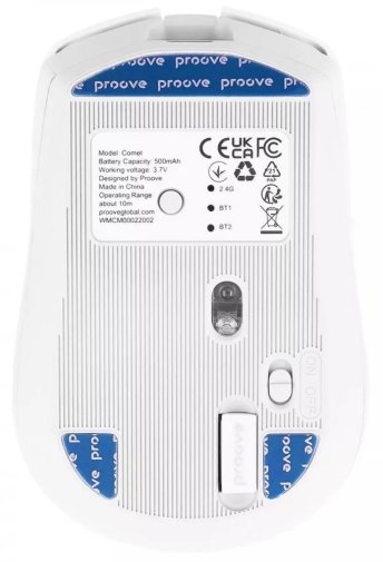 Proove Comet — це бездротова офісна миша, розроблена для повсякденного використання вдома та на роботі. Орієнтована не на геймерів, а на тих, хто цінує зручність, свободу від кабелів, естетичний вигляд та впевнену автономність без необхідності щодня думати про зарядку. Корпус виготовлено з ABS-пластику з матовим покриттям, яке не залишає відбитків пальців і стійке до щоденного зносу. Симетрична форма однаково добре підходить як правшам, так і шульгам, а розміри 64х101х35 мм і вага лише 73 г роблять мишу зручною навіть при тривалій роботі без втоми руки.