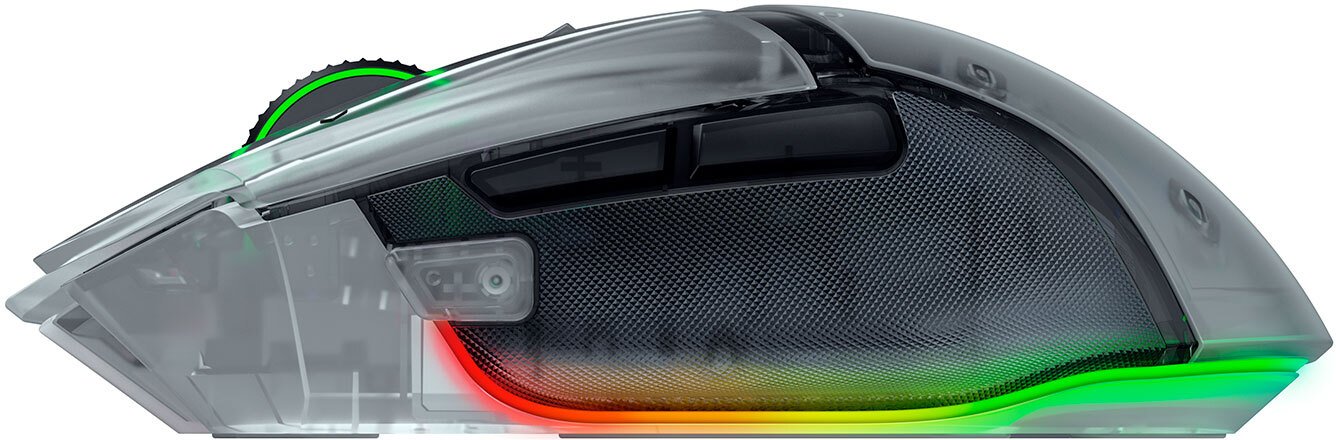 Миша оснащена сенсором Razer Focus Pro Gen-2 із роздільною здатністю до 35 000 DPI, швидкістю відстеження 750 IPS і прискоренням до 70 G, що забезпечує неперевершену точність на різних поверхнях, включно зі склом. Технології Smart Tracking і Motion Sync оптимізують калібрування та синхронізацію сигналів із ПК, гарантуючи стабільне позиціювання курсора. Інноваційне колесо Razer HyperScroll з нахилом пропонує три режими прокрутки: тактильний для точного перемикання, вільне обертання для швидкого скролінгу та Smart-Reel для автоматичного вибору режиму залежно від швидкості. Через Razer Synapse 4 можна налаштувати п’ять рівнів напруги прокрутки та прискорення, адаптуючи колесо до індивідуальних потреб.