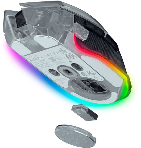 Підключення можливе через Razer HyperSpeed Wireless (2.4 GHz, до 140 годин роботи), Bluetooth (до 210 годин) або USB-C для зарядки під час використання. Для максимальної продуктивності з частотою опитування до 8000 Hz потрібен Razer Mouse Dock Pro або HyperPolling Wireless Dongle (продаються окремо).