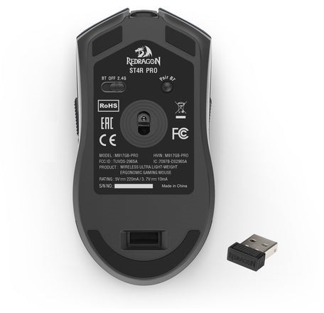 Мишка Redragon ST4R Pro M917GB-Pro — це ультралегка геймерська модель вагою 60 г, призначена для конкурентних ігор, де важлива блискавична точність і свобода рухів, перетворюючи кожен клік у постріл, що вражає, ніби мишка — це продовження вашої руки в хаосі шутерів чи стратегічних баталій, з трьома режимами підключення (дротовим USB-C, 2.4 ГГц через нано-приймач і Bluetooth) для гнучкості в будь-якому сетапі, від десктопу до ноутбука чи консолі.